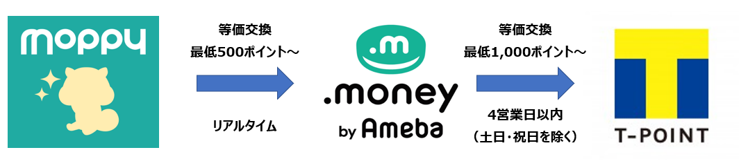 - モッピーからTポイントへは.money(ドットマネー)経由で交換